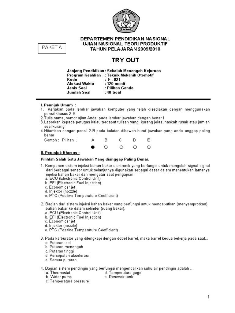Soal Essay Sistem Injeksi Sepeda Motor Lukisan from imgv2-2-f.scribdassets.com Dec 21, 2014 · a. Soal mesin otomotif atau soal pemeliharaan mesin kendaraan ringan (pmkr) dapat digunakan sebagai soal ulangan harian, soal ulangan akhir sekolah (uas) listrik otomotif atau soal uas pemeliharaan kelistrikan kendaraan ringan (pkkr), soal penilaian akhir sekolah. Ppmo tingkat/ program keahlian : Jun 09, 2020 · soal ini merupakan kumpulan soal mesin otomotif atau pemeliharaan mesin kendaraan ringan pmkr. Kunci jawaban soal engine dan komponennya kunci jawaban mata diklat : Ppmo tingkat/ program keahlian : Iii / tkr untuk soal engin. Kunci jawaban soal engine dan komponennya kunci jawaban mata diklat :