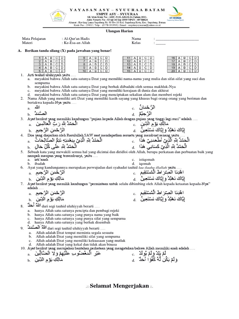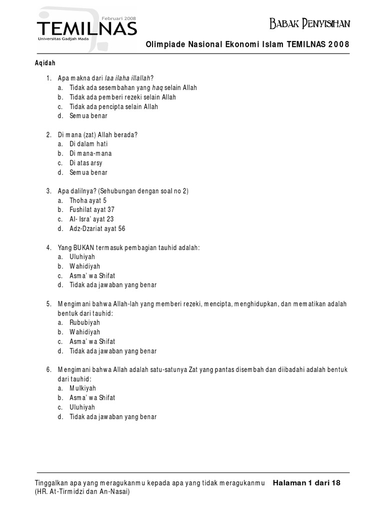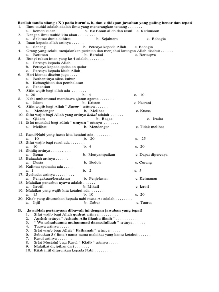 Soal Pilihan Ganda Tentang Tauhid Dan Jawabannya / Soal Pilihan Ganda Jawabannya Bahasa Indonesia Kelas 11 Bab 2 Struktur Dan Kebahasaan Teks Prosedur Sekolahmuonline Com Sekolahmuonline - Materi ini adalah bagian dari kompetensi dasar yang harus dikuasi dalam pembelajaran bahasa inggris di tingkat sma dan ma khususnya di kelas 12.. Supaya pembaca dapat mengerjakan soal ini dengan tenang, kami sudah menyediakan kunci jawaban soal perpajakan. Setidaknya ada 30 soal pilihan ganda tentang perpajakan yang siap untuk pembaca kerjakan. What is the meaning of the secences? Soal pilihan ganda dan jawaban bab renang smp mts. 38 soal pilihan ganda offering help beserta jawabannya.
